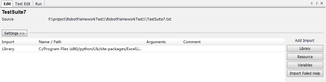 我们可以调用一下我们写的lib是否可以正常使用,在RIDE中,我们导入刚刚写的Lib。