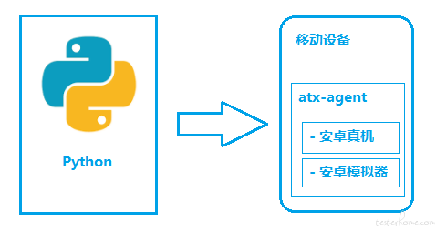 如图所示,python-uiautomator2主要分为两个部分,python客户端,移动设备