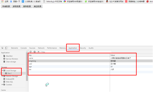 存储数据:sessionStorage.setItem('testKey','这是一个测试的value值'); // 存入一个值