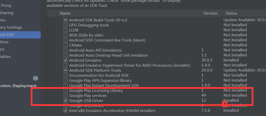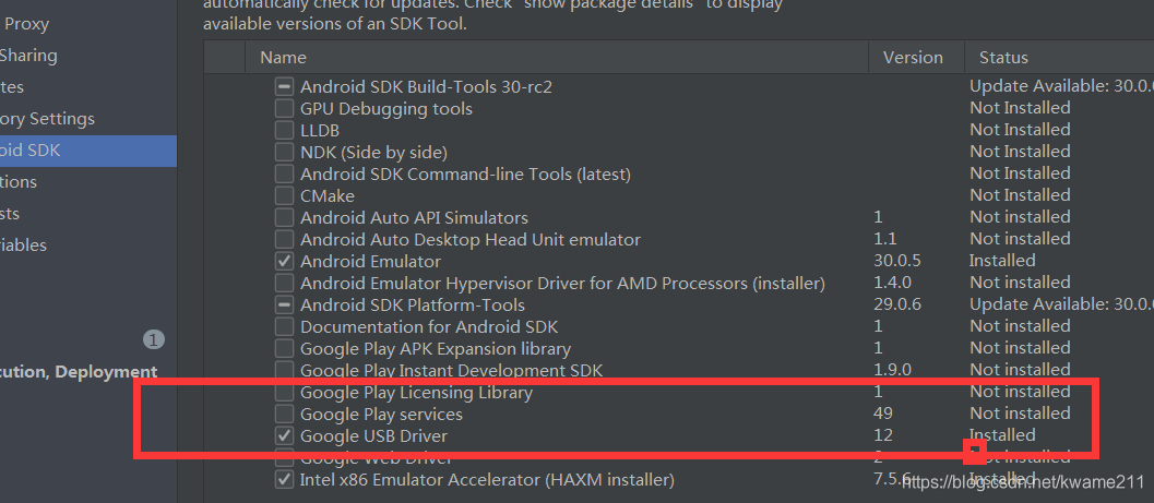 刚才有的同学在 %SDK目录%/extras/google/ 下找不到 usb_driver/android_winusb.inf。那么这时候要打开你的Android Studio,在Android SDK中选择“SDK Tools”,安装“Google USB Driver”就可以了
