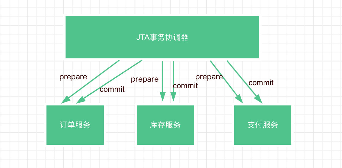 JTA控制器统一向3个服务发起prepare请求,如果3个请求都已确认,那3个服务都同时发起commit请求,再整个commit过程中所有涉及到的资源都是处理锁定状态,直到事务提交成功或超时,这样对系统资源消耗巨大的。