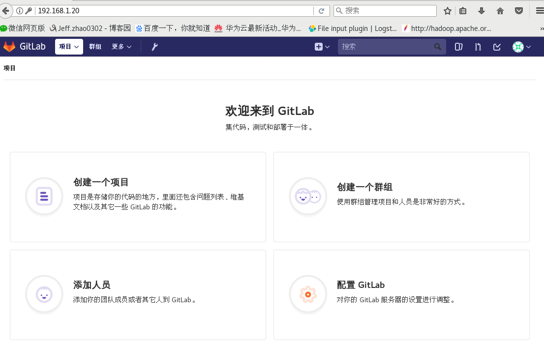 [root@client myweb]# git remote add origin http://192.168.1.20/devops/myweb.git #推送本地代码到gitlab