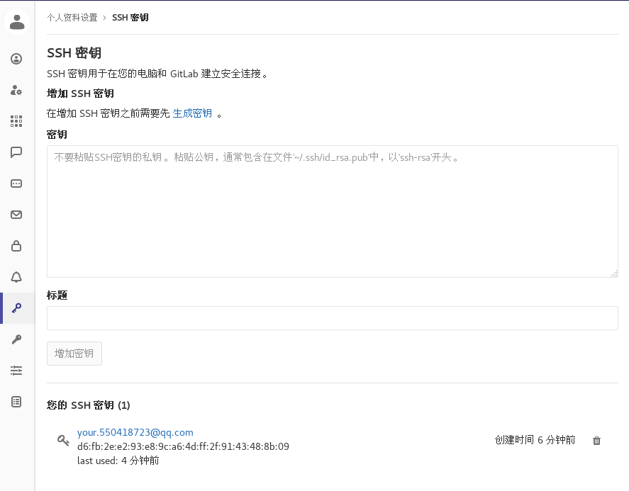 2.把你的ssh秘钥生成后放在秘钥框里