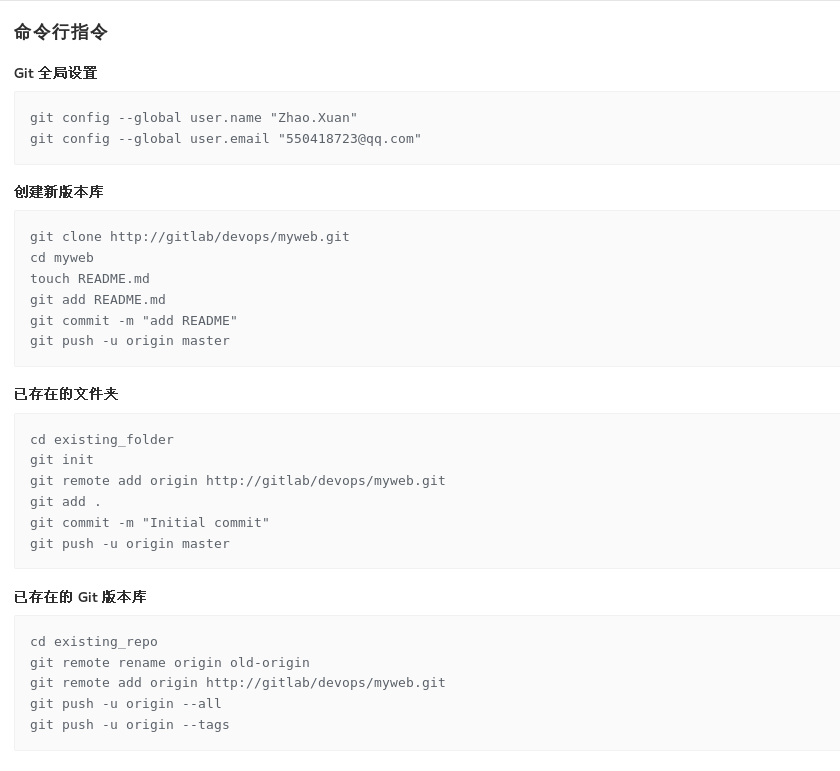 [root@client myweb]# git remote add origin git@gitlab:devops/myweb.git