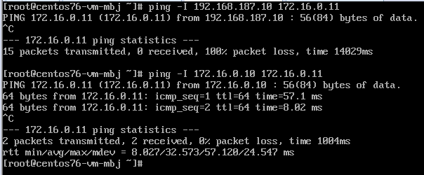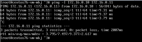 从172.16.0.10网卡ping 到172.16.0.11地址的主机可以ping通(172.16.0.0/24 LAN区段)