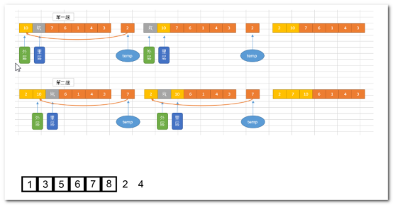 # 退出循环后,low与high重合,此时所指位置为基准元素的正确位置