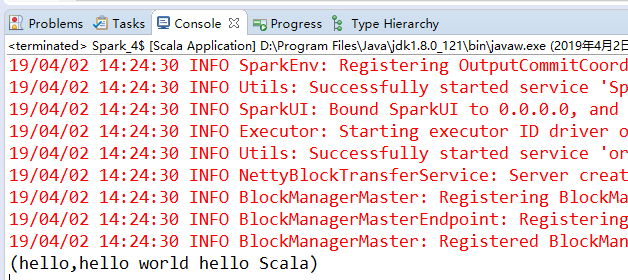 val lines = sc.parallelize(List("hello world hello Scala"))