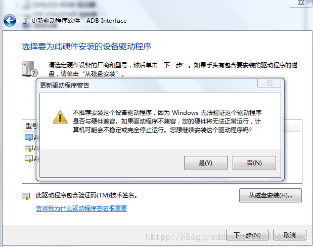 弹出”更新驱动程序警告”对话框”,点击”是”,如下图: