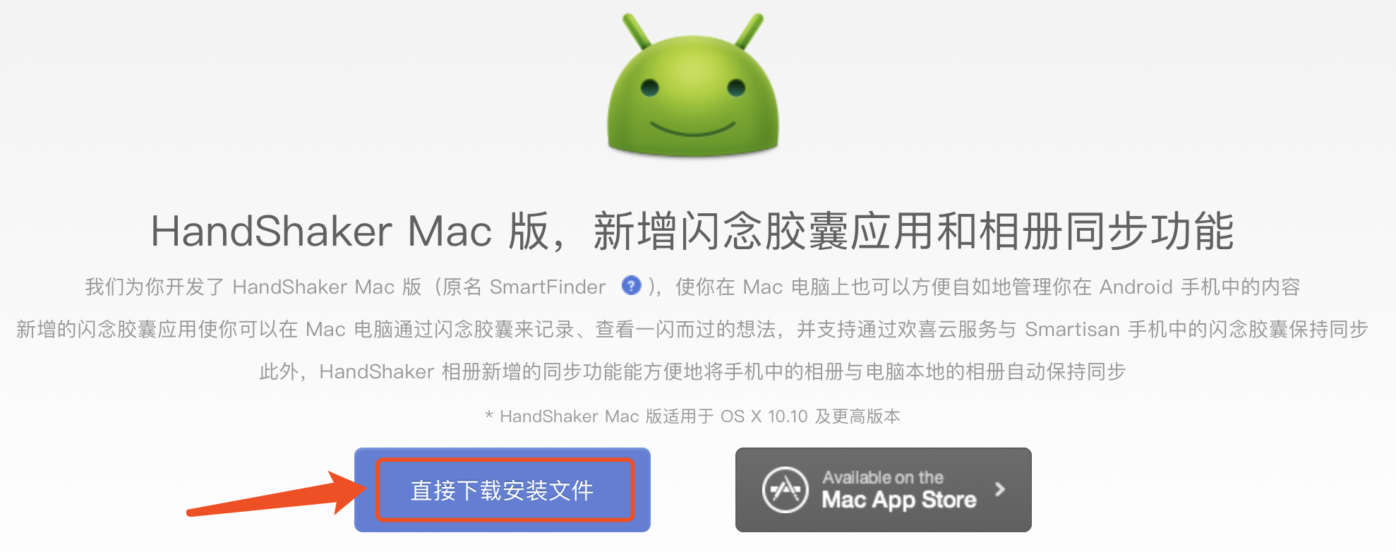 将Mac和Android手机连接起来的工具市面上有很多种,这里仅介绍小编工作中常使用的软件HandShaker。