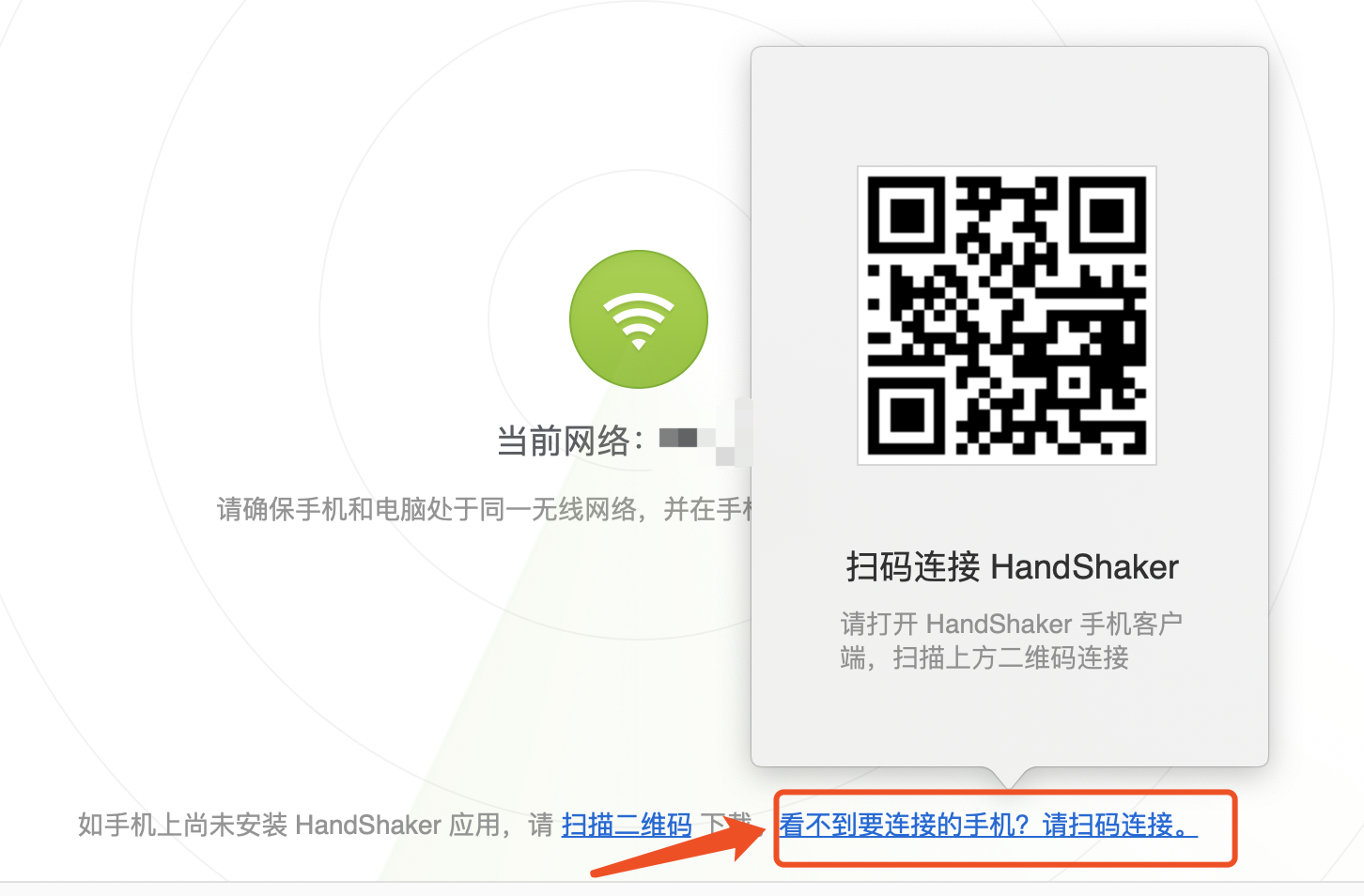 (3)启动台打开mac上安装的HankShaker,点击“连接手机”进行连接