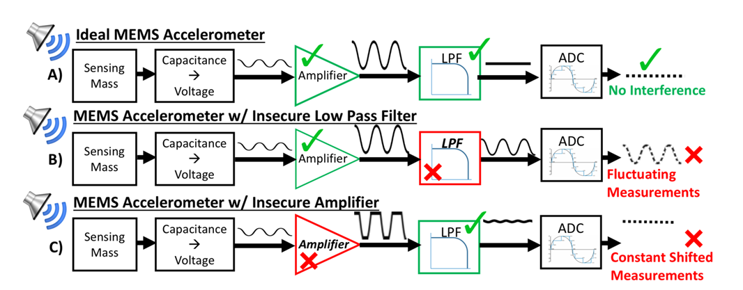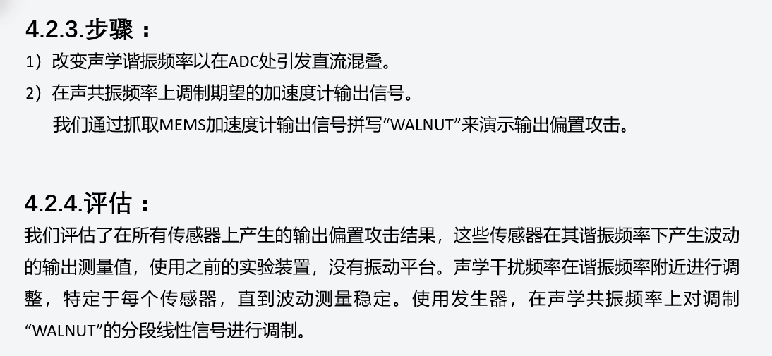 - 对MEMS加速度计和采用了这些传感器的系统进行声学注入攻击,并通过对攻击结果的测量来扫描硬件级安全漏洞。