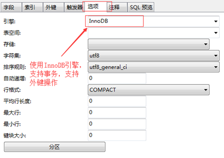②修改选项设置中的存储引擎为InnoDB,支持设置外键操作;