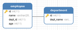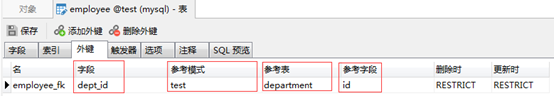 比如上述最简单的员工(employee)和部门表(department),设置外键dept_id与id相关联。