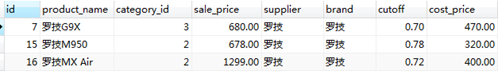 说明:本例以下所有查询以product、product_category、product_stock三张表为例;