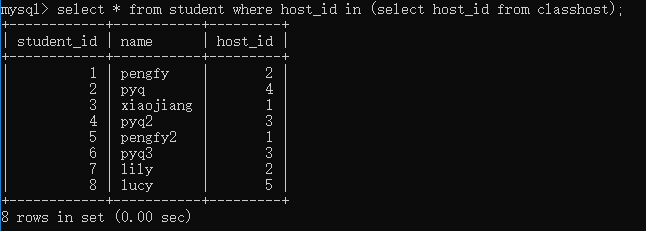select * from student inner join classhost on student.host_id=classhost.host_id;