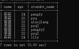 这里我们应该还是可以猜到,全外连接是在内连接的基础上增加左边有右边没有的和右边有左边没有的结果,我们又要新增一位学生了,那么sql语句如下: