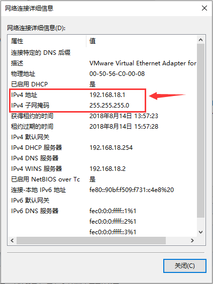 点击详细信息,查看IPv4地址,可以看见是192.168.18.1