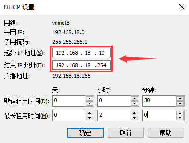记住DHCP的起止IP地址,例如:图示为 192.168.18.10~254