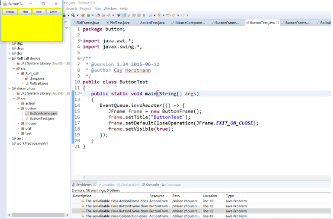 本章主要学习了事件处理的基本原理,理解其用途;掌握AWT事件模型的工作机制; 掌握事件处理的基本编程模型;了解GUI界面组件观感设置方法; 掌握WindowAdapter类、AbstractAction类的用法; 掌握GUI程序中鼠标事件处理技术。由于自己的基础等各方面的原因,以及前面知识与后面知识的衔接等原因,这一章的学习对于我来说还是相比较上一章来说有较大的困难的最后的编程题是在舍友的帮助下完成。在过程中也学习到了很多,很多时候独立完成作业比较困难没有思路,两个人相互交流讨论有助学习进步。