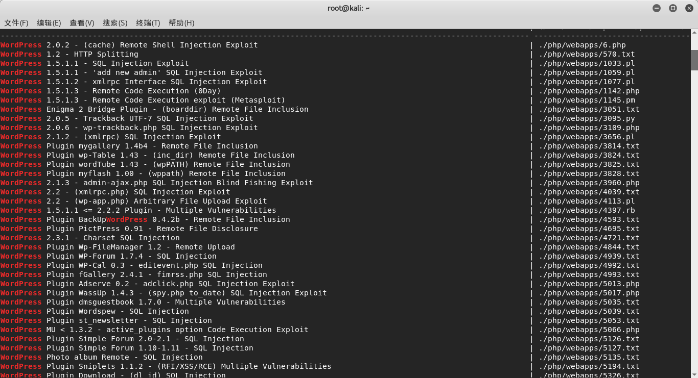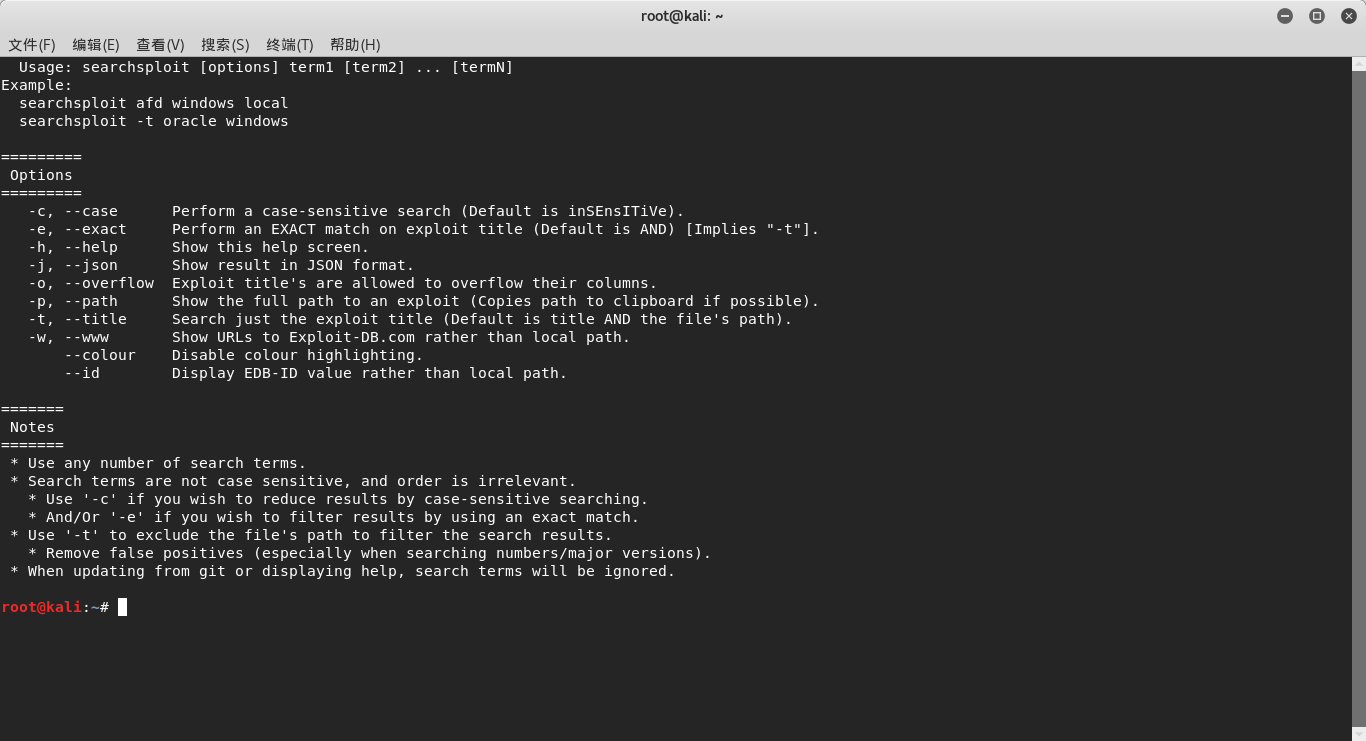 - searchsploit 可以借助关键词搜索出漏洞的相关信息。