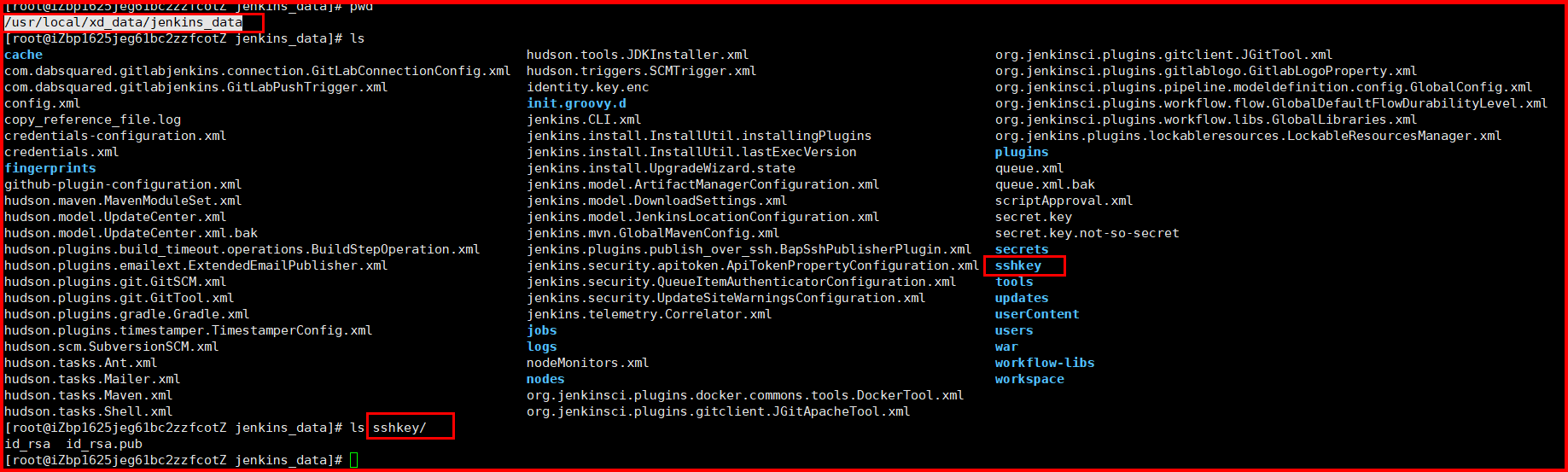 然后把它放在jenkins的共享目录内,在这边我是将它放在了我自己创建的目录sshkey内