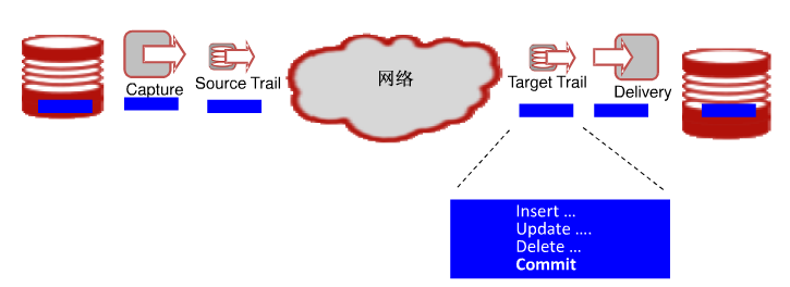 Replicat 进程运行于目标端;负责将源端传过来的 trail 文件;在目标端数据库应用。实现源端和目标端数据同步。