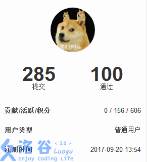2018-09-20 我终于 **$\color{red}\text{红名}$ **了,好开心啊^_^。 今天是我洛谷的一周年纪念日耶!!!