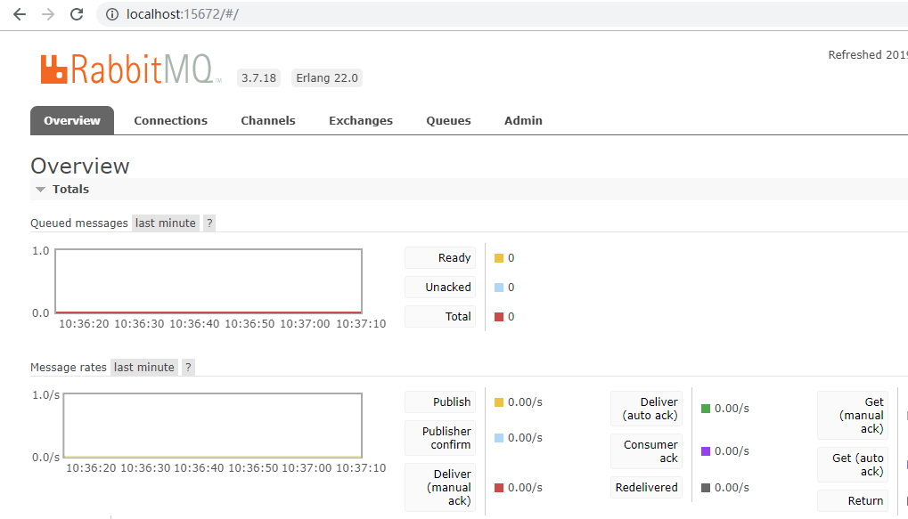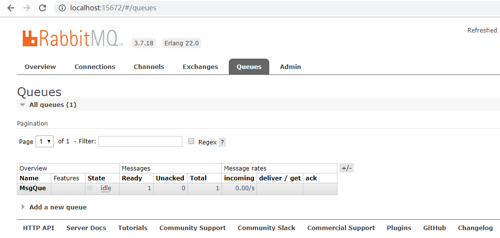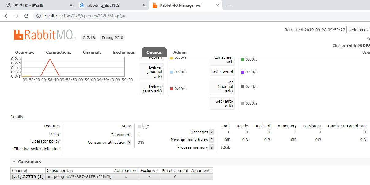 看到这个页面后,意味着RabbitMq的安装配置都完成了,下面就可以写代码了。