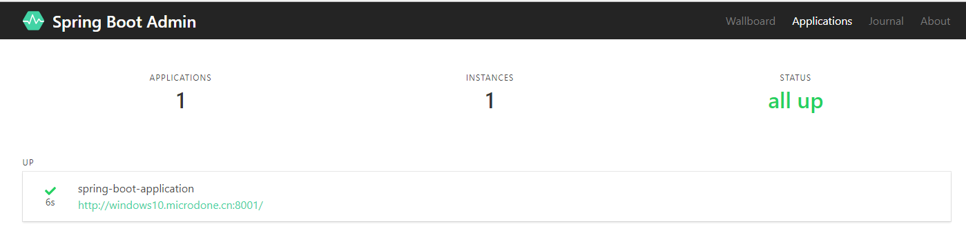 配置完成之后,启动 Client 端,Admin 服务端会自动检查到客户端的变化,并展示其应用