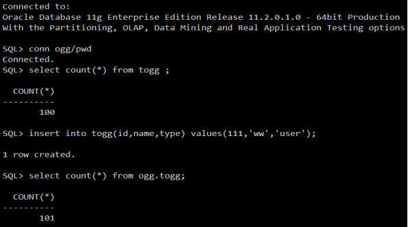 到现在为止,OracleOgg安装成功并且测试同步数据成功!
