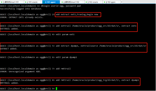 GGSCI (localhost as ogg@orcl) 9> add extract dpump1, exttrailsource /home/oracle/product/ogg_src/dirdat/sr