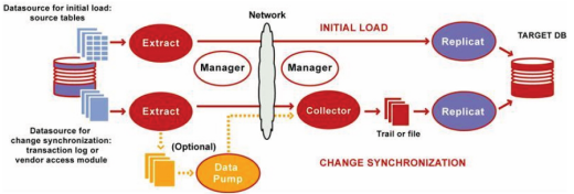 Replicat进程运行在目标端读取tail文件和重构DML、DDL并应用到目标数据库;Replicat编译SQL一次,当变量值不同时重复使用编译过的SQL;Replicat进程可以像extract进程一样配置初始化数据加载(直接从数据源中加载静态的数据)和在某个时间点后源端与服务端变更数据同步(从在线日志或归档日志抽取捕获变更的数据);
