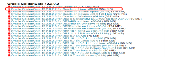 此次使用的安装包版本为Oracle GoldenGate 12.2.0.2.2 for Oracle on Linux x86-64
