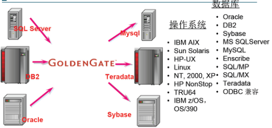- Golden Gate(简称OGG)提供异构环境下交易数据的实时捕捉、变换、投递等功能。