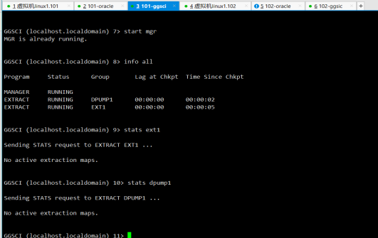 数据初始化后,分别启动目标端MGR进程、Replicat进程,源端MGR进程、主抽取进程(Primary Extract)、Data Pump进程(Secondly Extract)