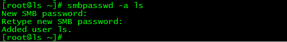 smbpasswd -a ls    #ls是给samba添加的用户名