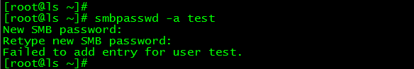 如果要添加的用户名原先不是一个系统账号那是添加不上的,会报错“Failed to add entry for user test”。