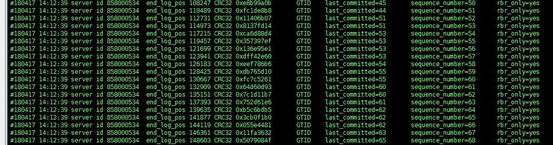 #180403 10:11:47 server id 104073 end_log_pos 376472258 CRC32 0x27cf3013 GTID last_committed=641254 sequence_number=641260