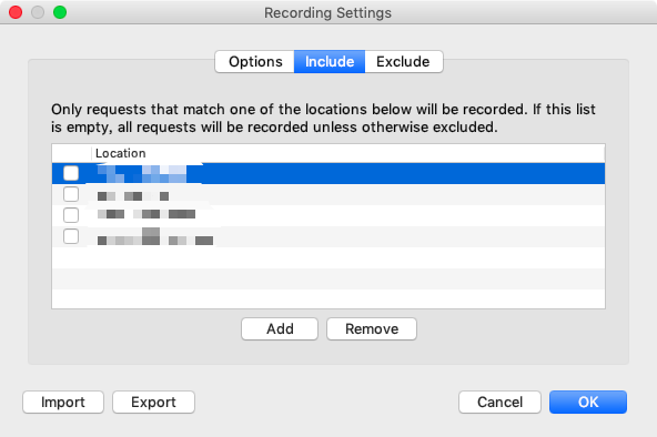 include 可以设置想要抓包的地址;exclude可以设置想要过滤的地址。
