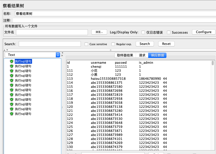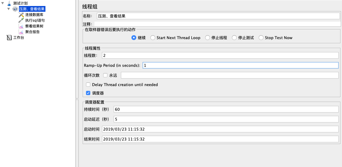 我们一这个连接数据库的执行为例子,学习一下在jmeter中怎么查看压测结果。