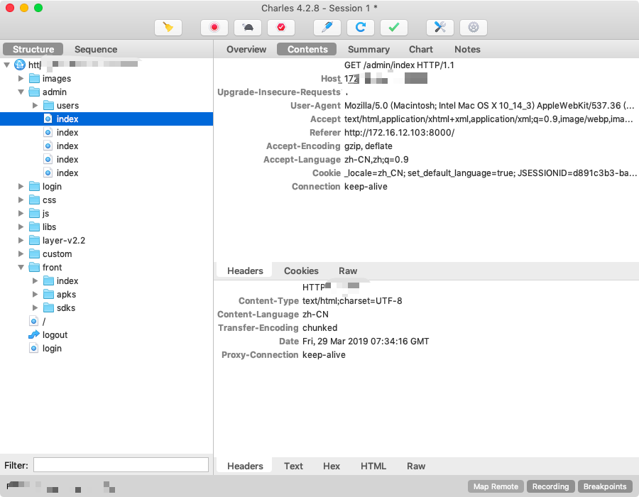 下一步我们就用charles来抓包看看,这里我用公司内部的加固系统作演示