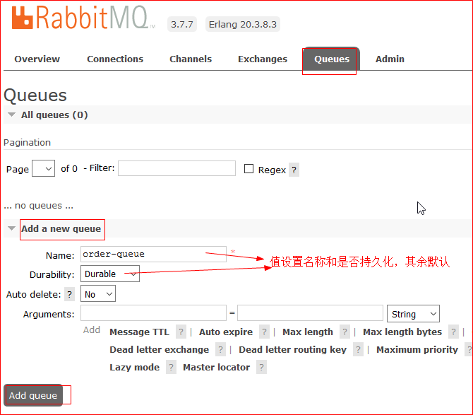 3.3.2 在RabbitMQ中添加Queue