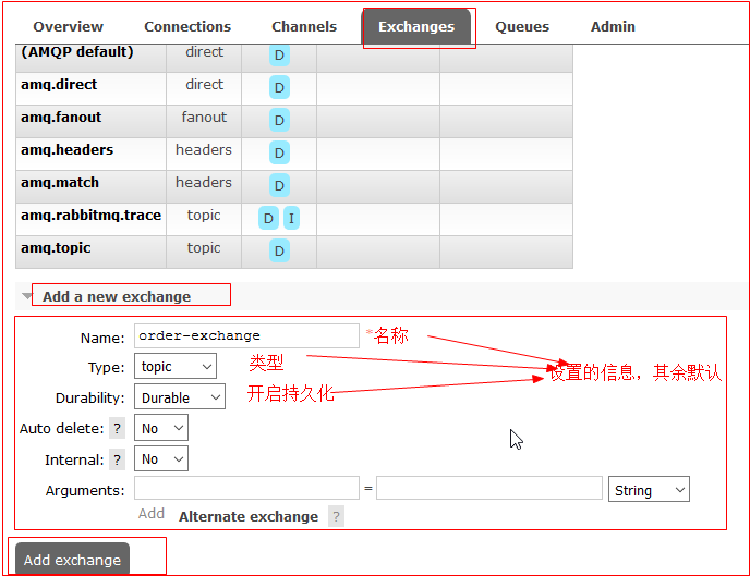 3.3.1 在RabbitMQ中添加exchange