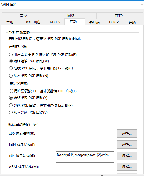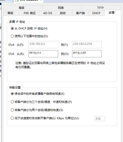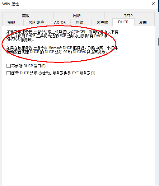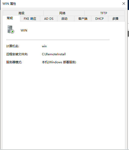 右击【Windows部署服务器】在弹出的对话框中单击【属性】按钮;按照下图分别设置服务器的启动项、DHCP、多播等参数。
