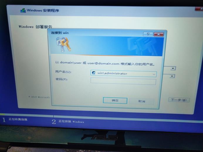 因为我们不是AD所以也就没有domain,这儿要想登录,可以使用"2016服务器计算机名\ administrator"密码也是服务器administrator的密码
