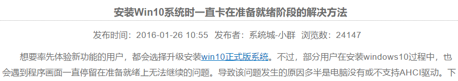 2. 电脑安装Win10系统,重启后一直卡在 “准备就绪”阶段,直到卡死。(也就是 屏幕中的圈 卡死不转了)