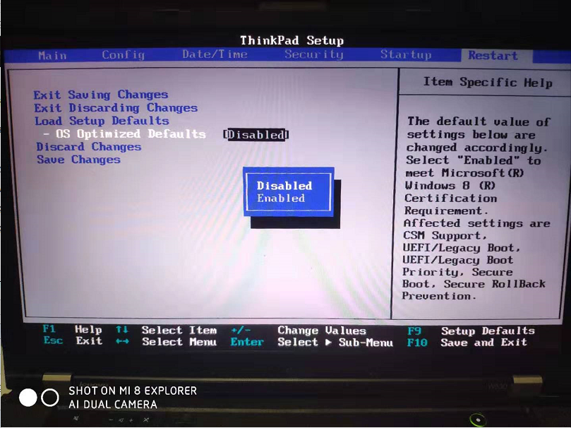 OS Optimized Defaults 开关可以理解为 UEFI 和 传统BIOS 的切换。改完后,一定要按F9键,恢复默认设置。