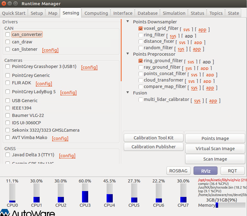 如果你有其他品牌的激光,他们发布的topic不是/velodyne_packets,且frame_id同样不对应,这时可以自己写个程序转一下,参照:https://www.cnblogs.com/hgl0417/p/11067660.html。然后单独运行你的lidar driver node,将你的点云数据模拟成velodyne数据。此时,不需要点选runtime manager上的lidar配置文件(每个配置文件对应一个package或者node,意义在于将对应的topic发布,此时你已经发布了topic,所以不需要在点选上述配置文件)。