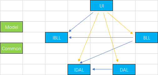 面向接口(抽象)编程,是为了降低程序的耦合度,符合依赖倒置原则。因此典型的三层架构UI、BLL、DAL基于接口设计后,会拓展成UI、IBLL、BLL、IDAL、DAL。在上一篇《C# IoC学习笔记》中我们可以了解到,控制反转(IoC)使对象的创建交给了第三方IoC容器如Unity。利用Unity的IoC功能,可以对基于接口设计的三层架构做进一步的升级,搭建一个更容易实现的可配置可扩展的三层架构;利用Unity的AOP功能,使框架更加的简洁,因为它抽出了框架的公共逻辑部分。