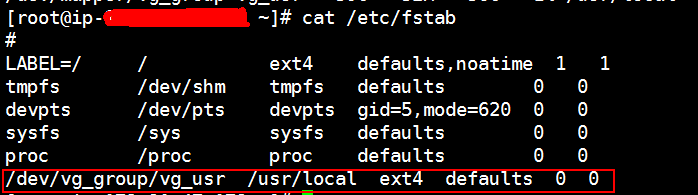 9,编辑/etc/fstab文件,创建磁盘开机自动挂载